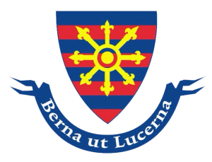 Cruce et Aratro op de heraldische kleuren Lazuur en Keel in reliëf ofwel blauw en rood,